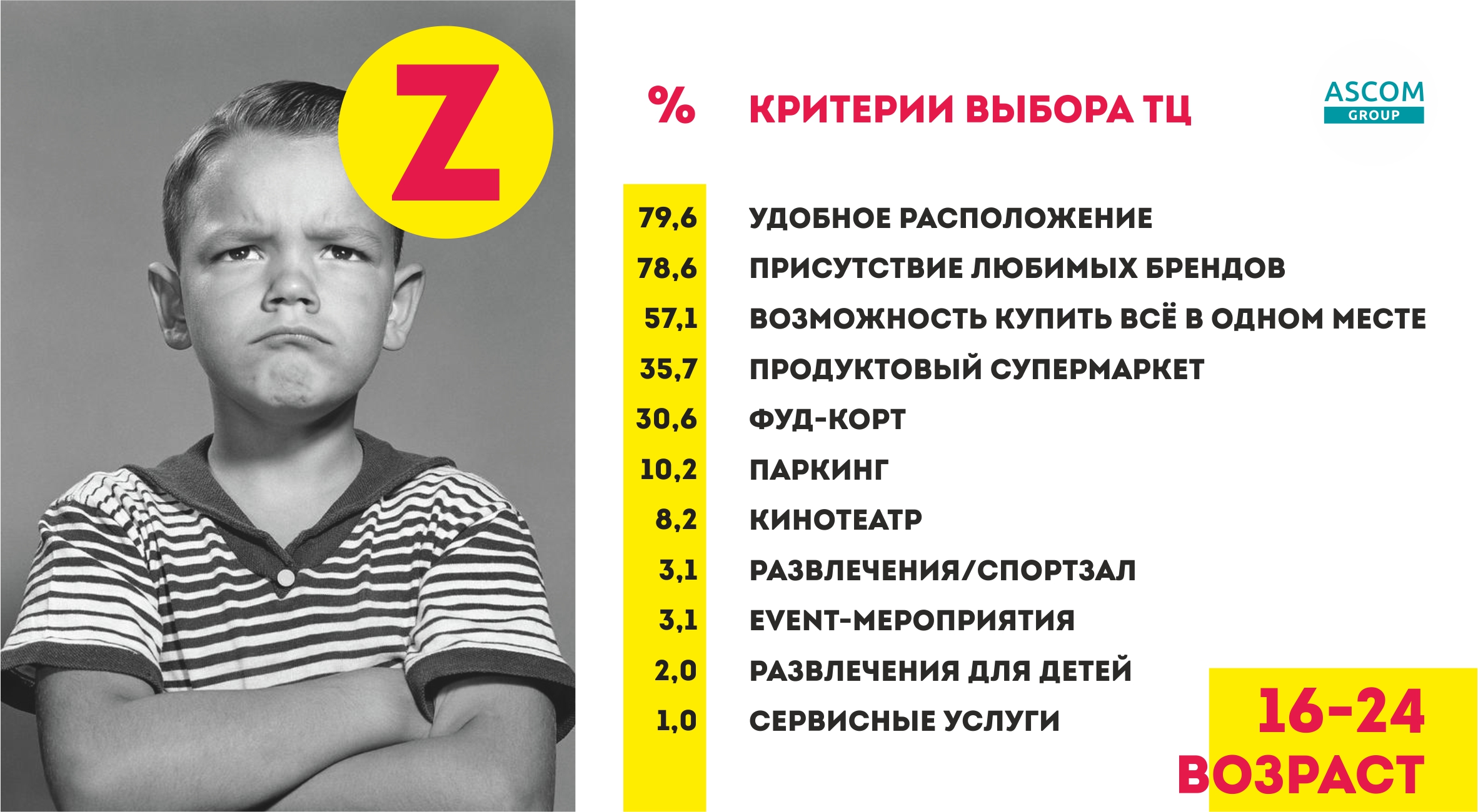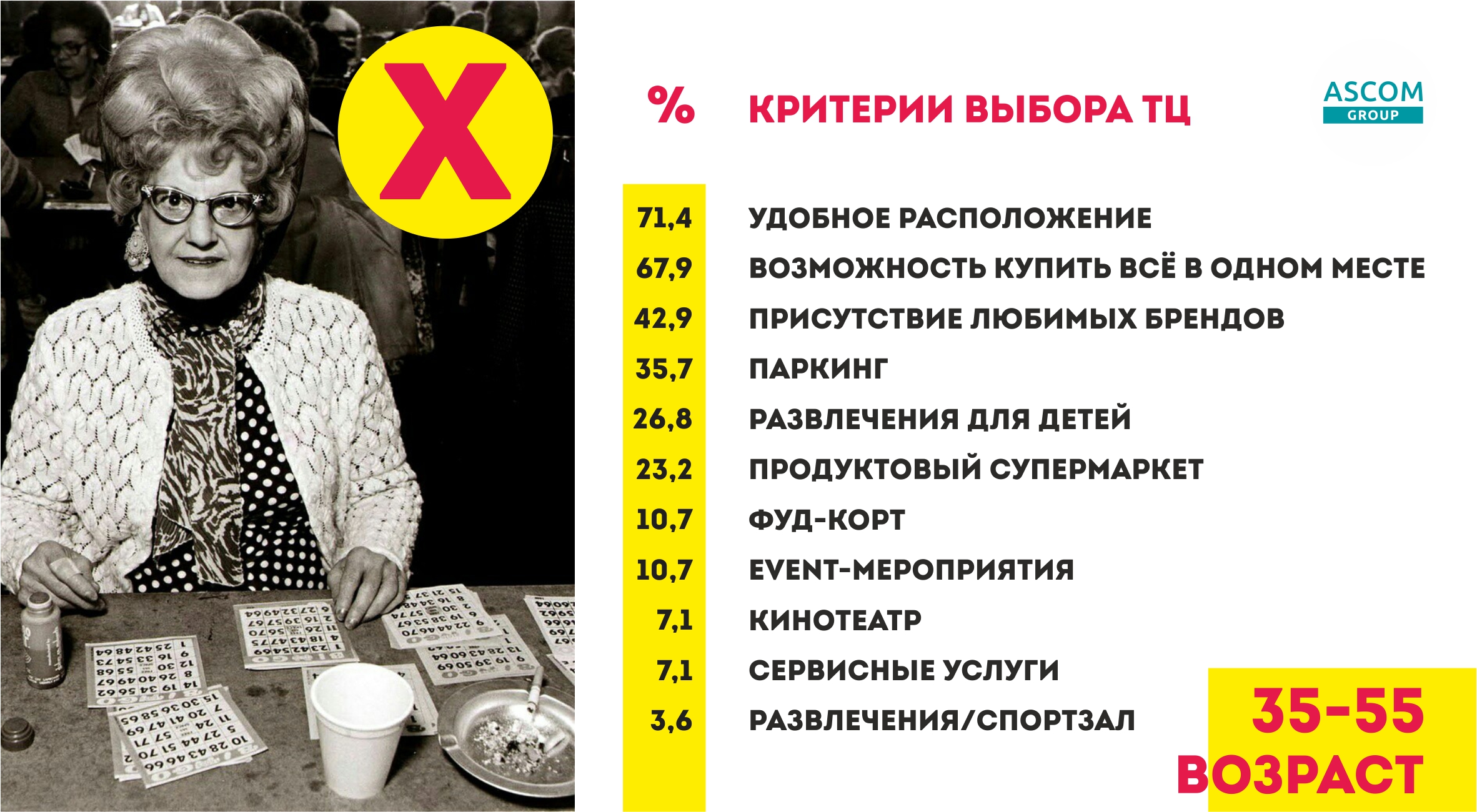 ASCOM GROUP в лице управляющего партнера Анны Заборонок выступила с темой определения стоимости бренда торгового центра, где также затронула проблематику ключевых критериев выбора торгового центра в разрезе поколений X, Y, Z. Для более детального раскрытия темы Анна Заборонок дополнила свое выступление результатами исследования компании AuditService.